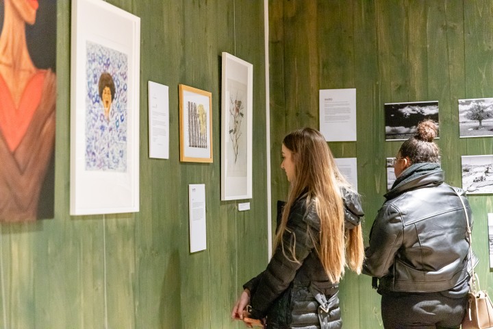 Throughout the space, you’ll find a curated display of artwork—including painting, photography, mixed media and digital pieces. Each work is accompanied by the artist’s name and a short statement, offering insight into their inspiration and creative process.